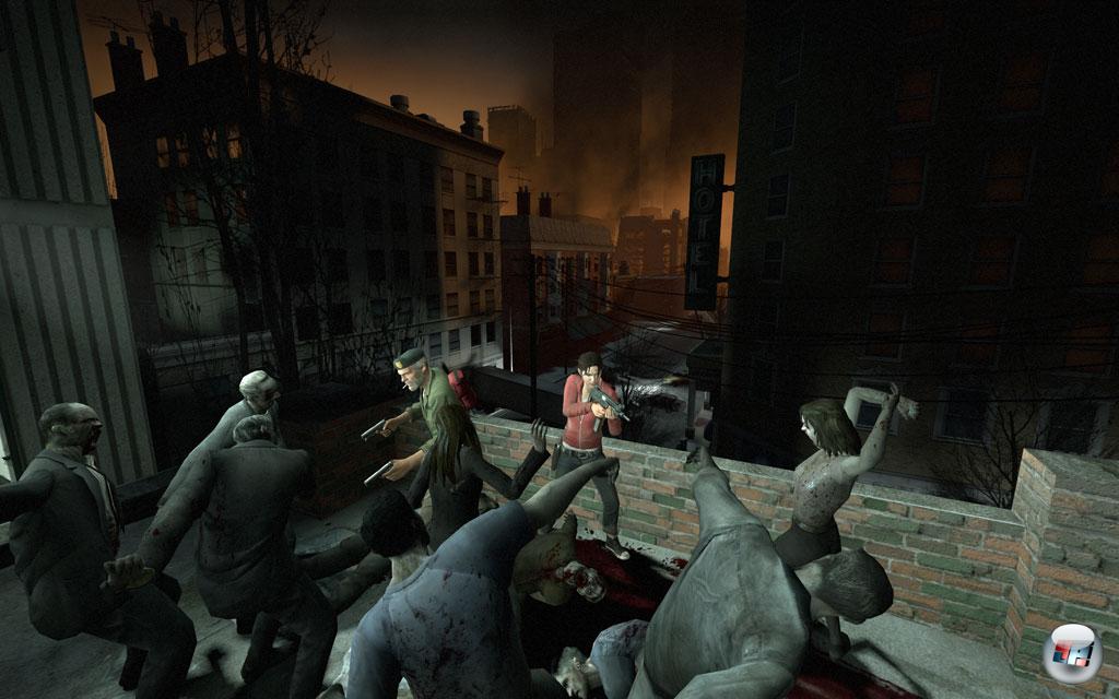 Im Koop-Modus ist Left 4 Dead schon der Hammer, aber so richtig rund geht es erst, wenn ihr mit bis zu acht Spielern im Versus-Match gegeneinander antretet, Dabei schlüpft die eine Hälfte in die verwesende Haut der Mutationen und muss alles daran setzen, dass die Überlebenden den nächsten Safe-Room nicht erreichen. Ob ihr als Boomer, Hunter oder Smoker die Jagd eröffnet, wird dabei per Zufall geregelt – genau wie die Wahl, welcher der Spieler irgendwann für eine kurze Zeit den mächtigen Tank übernehmen darf. Als Mutant seht ihr übrigens nicht nur die Silhouetten eurer zombifizierten Kollegen, sondern auch die der Mitstreiter. Zudem stehen euch ganz neue Wege offen, da ihr in dieser Form auch Mauern erklimmen und euch so z.B. auch auf Dächern postieren könnt. Doch das Leben als Untoter bringt auch einige Nachteile mit sich. Der schlimmste: Es ist schnell vorbei! Im Gegensatz zu den Überlebenden könnt ihr als Mutation nicht sonderlich viel einstecken und segnet entsprechend schnell das Zeitliche. Auch könnt ihr keine Türen öffnen, weshalb ihr in der Rolle der Überlebenden immer darauf achten solltet, sie hinter euch zu schließen, um euren Gegner so den Weg zu versperren. Doch während die Menschen nur eine Chance haben, dürft ihr als Mutanten unendlich oft respawnen. Es dauert zwar vor allem auf dem PC eine gewisse Zeit, bis ihr wieder in die Partie einsteigen könnt, doch ist die Balance zwischen Überlebenden und Zombies insgesamt sehr gelungen, zumal ihr als Infizierter die fatalen Angriffe wie das Kotzen auch erst aufladen und nicht ständig austeilen könnt. Einen kleinen Wehrmutstropfen gibt es aber für beide Seiten: Im Gegensatz zum Koop, in dem ihr sämtliche Kampagnen angehen könnt, wurden für den Versus-Modus lediglich zwei von ihnen bereit gestellt. Dies läuft dann so ab, dass beide Teams abwechselnd in die Rolle der Zombies und der Überlebenden schlüpfen. Welches Team sich weiter bis zur Sicherheit vorarbeiten kann und weniger Schaden nimmt, gewinnt die Runde. Insgesamt ist der Versus-Modus meiner Meinung nach sogar noch spaßiger als das Koop-Gemetzel oder zumindest auf dem gleichen hohen Niveau. Einzig, wenn ihr auf der 360 im Splitscreen gegeneinander antretet, erscheint das Prinzip etwas sinnfrei, da ihr ja bereits sehen könnt, wo sich euer Kumpel in Mutantengestalt verschanzt. So geht der Überraschungseffekt vollkommen verloren. Außerdem ist der Splitscreen-Versus völlig unfair: Während sich euer Gegenüber mit drei starken KI-Kameraden in die Schlacht zieht, seid ihr als Infizierter völlig auf euch alleine gestellt und die Erfolgschancen sind entsprechend niedrig, die Überlebenden am Erreichen des Safe-Rooms zu hindern.