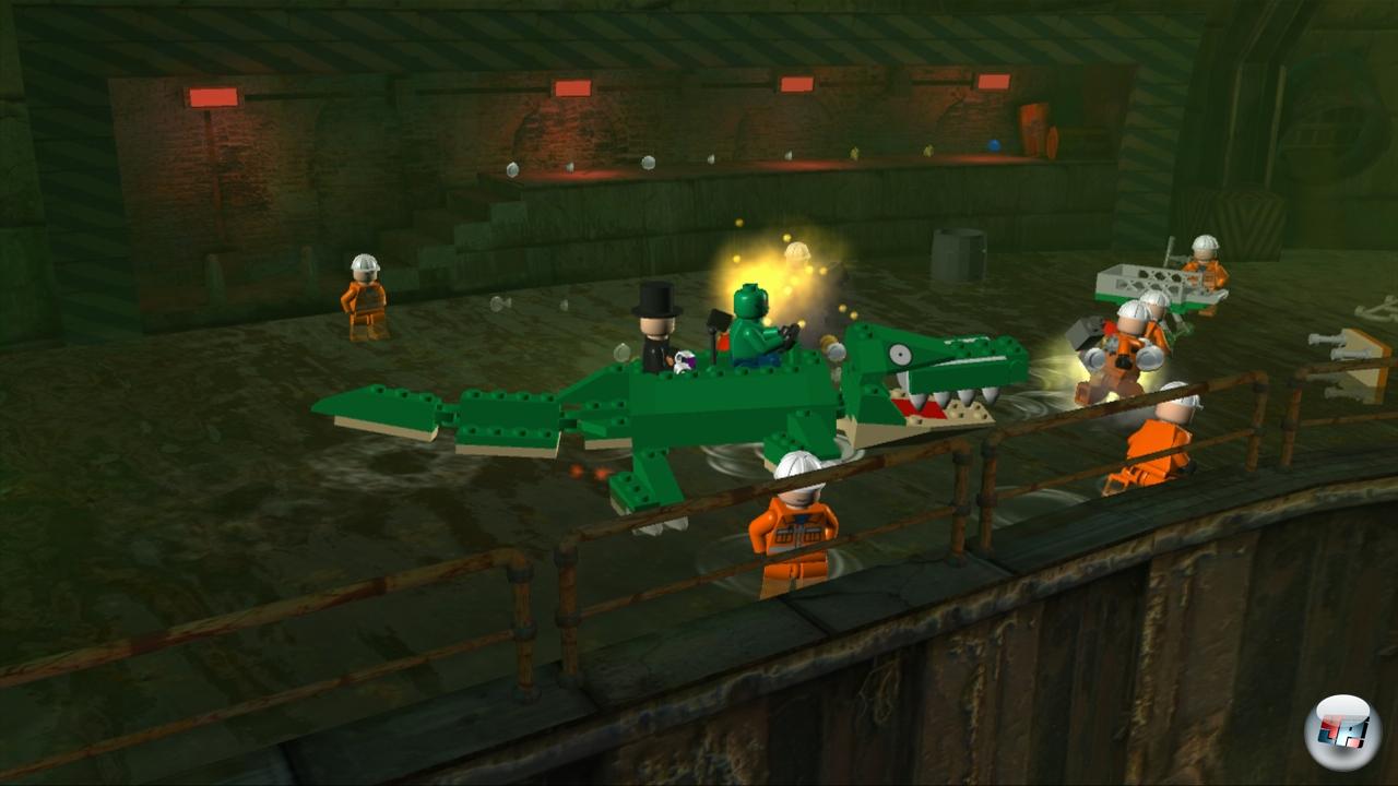 Die technische Seite ist wie gewohnt ein zweischneidiger Batarang: Unter Grafikfreak-Gesichtspunkten betrachtet ist die Inszenierung sehr simpel, die Figuren sich ebenso einfach designt wie die Levels, die Texturen bestehen oftmals auf blanken Flächen. Aber hey: Das ist Lego! Und in diesem Lichte sieht alles gleich viel besser aus: Die Klotzmännchen sehen genau wie ihre Echtwelt-Spielzeug-Pendants aus und zeigen bemerkenswert viel Mimik und Gestik. Die komplett aus Lego-Teilen gebauten Welten bestechen mit herzerwärmend vielen albernen Details, überall gibt es etwas zu entdecken oder im Zweifelsfall kaputt zu machen. Akustisch fällt nach wie vor die Abwesenheit von Sprachausgabe auf, alle Figuren kommunizieren