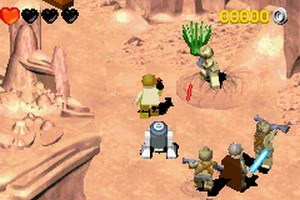 Der Grundgedanke der Lego Star Wars-Serie lebt auch in den Mini-Fassungen weiter: Als Luke, Han Solo, Leia oder Chewbacca (insgesamt warten mehrere Dutzend Figuren auf euch) rennt, springt, ballert und lasersäbelt ihr euch durch 16 Levels aus der klassischen Trilogie. Ihr befreit Leia aus den Händen von Jabba, bringt AT-Ats auf Hoth zu Fall und jagt schlussendlich mit einem gut gezielten Torpedo den Todesstern in die Luft. All das und mehr natürlich im Lego-Outfit: Alle Figuren bestehen aus den berühmten Noppen-Klötzen, alles sieht comichaft und witzig aus. Die DS-Fassung ähnelt den großen Versionen noch am ehesten, ist sie doch