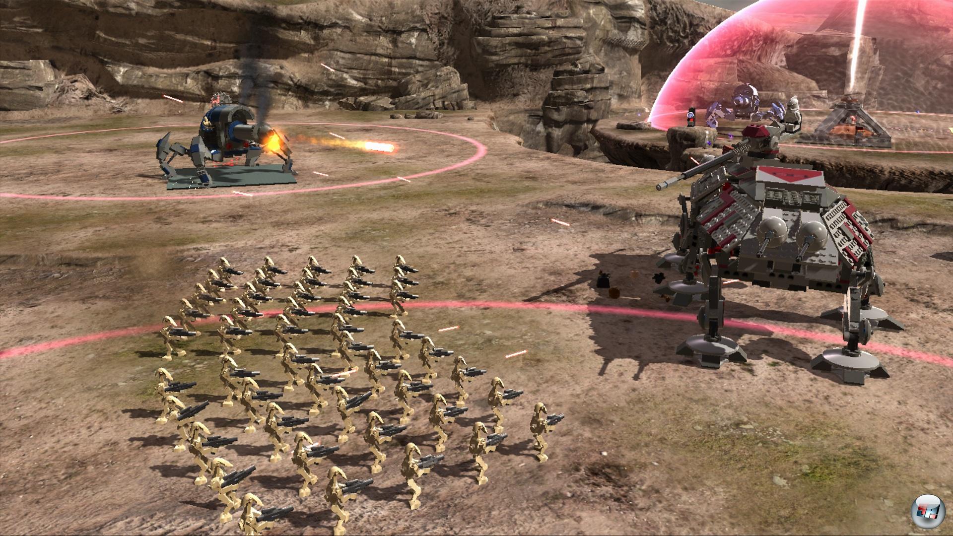 Je nachdem, welches Lego-Spiel man in den letzten sechs Jahren in der Hand hatte, war es ein bisschen anders: Star Wars und Batman gingen mehr in Richtung Action, Indiana Jones und Harry Potter waren in knoblerischer Mission unterwegs. TCW gehört zur ersten Gruppe: Allein die brandneuen Massenschlachten, in denen mehrere Dutzend Klonkrieger gleichzeitig auf dem Bildschirm herumwuseln, sind dafür ein deutliches Zeichen.