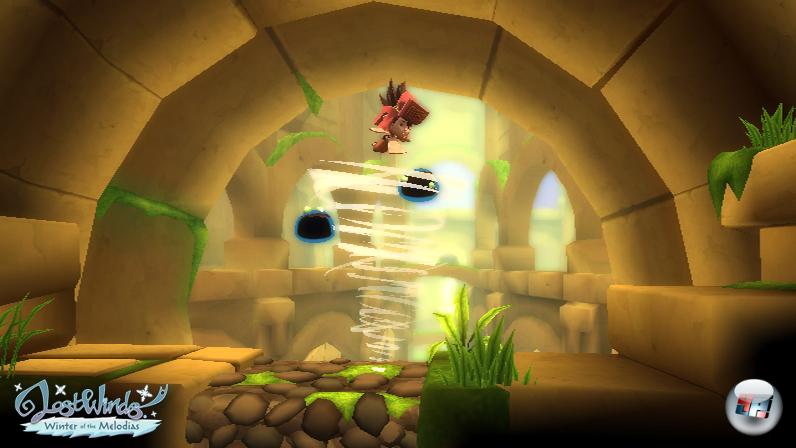 Besser funktionieren die Rätsel, bei denen die neuen Fähigkeiten wie das Ändern der Jahreszeit zum Zug kommen. Durch Unterwassergrotten kann Toku natürlich nur dann kraulen, wenn sie nicht zugefroren sind. Oder ich verwandle die blühende Fauna zurück in eine lebensfeindliche Eiswelt, damit ich einen Schalter mit Schnee beschweren kann. Auch die Luftwirbel werden äußerst nützlich: Mit ihnen schleudere ich Toku hoch in die Luft oder verwandle einen ganzen Teich in eine Wolke und lasse das Nass in einer anderen Grube abregnen.