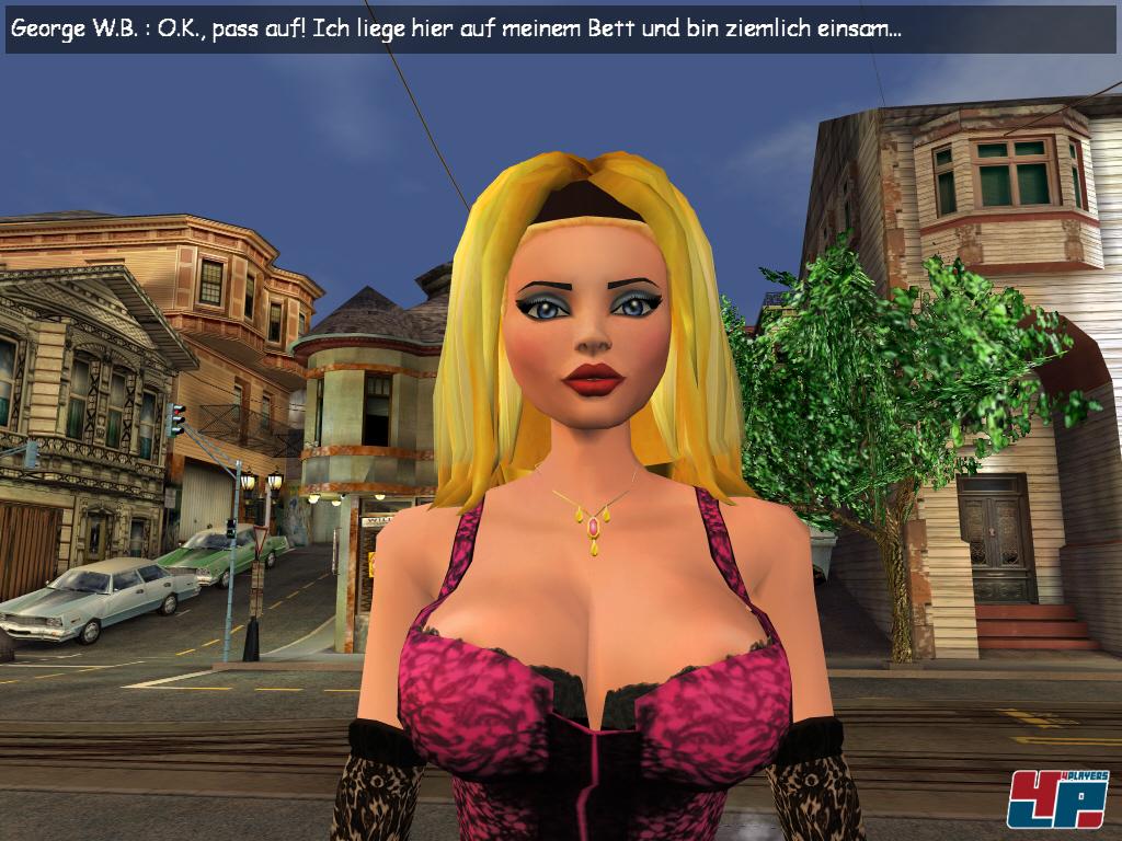 Aber fangen wir ganz vorne an: Im Introvideo räkelt sich Nackedei Lula an der Tanzstange, während ihr gehirnamputierter Hund Dusty einen Gast als Rammelhausschuh missbraucht, und sich Lula darüber scheckig lacht. Abrupter Schnitt zum Spiel: Blondie ist Pornoproduzentin, der reichlich spät auffällt, dass ihre Drillings-Stars nicht pünktlich am Popp-Set auftauchen. Eine hysterische Suche später steht fest: die drei wurden entführt! Die Suche nach dem wertvollen Schauspielerfleisch führt Lula von Beverly Hills über San Francisco, Las Vegas und Mount Rushmore in eine zwielichtige Schönheitsfarm. Doch vor das »3D Action-Erotic-Adventure mit superspannender Story« (so der bescheidene Packungstext) haben die Entwickler den Kopierschutz gestellt: Wenn ihr Glück habt, dann läuft das Spiel bei euch. Wenn nicht (so wie bei uns), dann funktioniert es erst auf dem dritten Rechner – je nachdem, ob das Sicherungssystem will oder nicht.