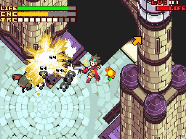 Aber es regt sich Widerstand: Da ist einmal die so genannte „Zunft“, die sich dem ehrenhaften Kampf gegen das Böse verschrieben hat. Ihr gehört ein Junge namens Aaron an, der mit seiner Pistole attackiert. Und da ist ein wütender Einzelgänger namens Lucian, der sich die Rache am Tod seines Vaters aufs dunkle Schwert geschrieben hat. Diese beiden Helden sollen die Vampirfürsten jagen, den Sonnenschirm zerstören und die Erde retten. Ab dem dritten Kapitel könnt ihr jederzeit zwischen ihnen wechseln – allerdings gibt es keine Teambildung wie in Castlevania; man steuert immer nur einen Helden.