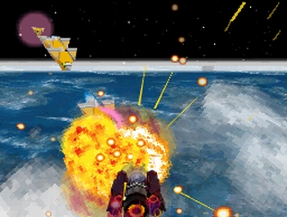 | Habt ihr einen Vampirfürsten besiegt, müsst ihr euch über coole Dogfights zu einer Solarstation kämpfen – erst dort wird der Beißer enstorgt. |
