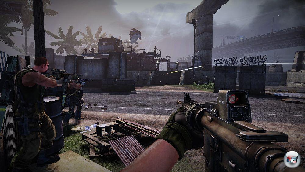 Die größte aller Spielvarianten ist der Herrschafts-Modus: Nur hier geht es mit 256 Teilnehmern zur Sache. Er steht nur für Söldner zur Verfügung, welche sich ein paar Stunden in den anderen Modi warm gezockt und Level 8 erreicht haben. In dieser Variante arbeitet sich das angreifende Team von allen Seiten bis in die Mitte der ringförmigen Anlage, um schließlich die Treibstoffanlagen zu zerstören. Auf dem Weg dorthin werden von den einzelnen Squads nach und nach Fackel- und Kühltürme sowie Bunker gesprengt, bis schließlich der Angriff auf die zentralen Pumpstationen ansteht. Die Verteidiger sollten ihre Flak gut beschützen, damit ihnen feindliche Luftschläge erspart bleiben. In der Endphase darf das angreifende Team einen vor den Toren der Anlage schwebenden Hubschrauber als Spawn-Punkt benutzen. In den meisten Fällen laufen die Herrschafts-Matches recht flüssig ab. Die Bildwiederholrate fällt allerdings etwas niedriger aus als in den übrigen Varianten. Außerdem treten gelegentlich kleine, aber nicht sichtbare Lags auf: Manchmal pumpe ich z.B. einen wie angewurzelt stehenden Gegner mit Blei voll, bis er sich schließlich bewegt und mich mit einem Schuss niederstreckt.