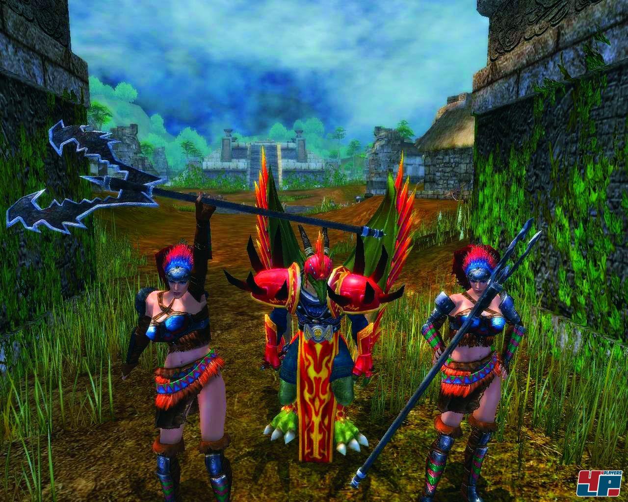 Für viele mag auch die inhaltliche Geschlossenheit egal sein, es gibt ja haufenweise Monster zum Abmetzeln. Aber wenn ich bei einem Händler in einer Fantasy-Welt (in der es ähnlich wie in Warhammer auch ballistische Waffen gibt) einen Ring finde, der mir Zitat: „sofortige Street-Credibility beschert“, wende ich mich lieber wieder Silverfall oder Titan Quest zu. Das spricht wahrlich nicht für eine gelungene Lokalisierung. Daneben sorgt der Knopf mit der Aufschrift „Lebe“, der euch immer dann freudig anstrahlt, wenn ihr da Zeitliche segnet und eure Wiederauferstehung bewirkt, zumindest anfänglich noch für ein Schmunzeln.