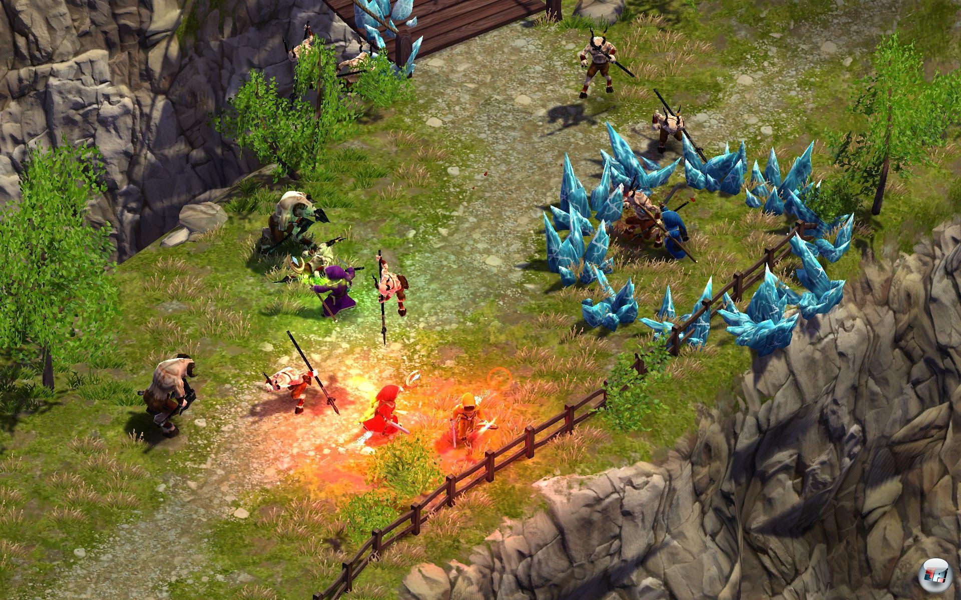 Das Einzige, was Magicka mit klassischen Genre-Vertretern vom Schlage eines Diablo, Dungeon Siege oder Sacred teilt, ist die Fantasy-Kulisse, haufenweise Gegner sowie die leicht isometrische Perspektive. Alles andere, was man mit diesen Spielen in Verbindung bringt, sucht man hier vergebens. Es gibt kein Inventar, keine Gegenstandsflut, keine Erfahrungspunkte und dementsprechend auch keinen Levelaufstieg. Leider bleibt auch die Story sowohl Spannung als auch Inhalt schuldig. Sie kann zwar mit viel Humor und zahlreichen Anspielungen auf Pop-Kultur, u.a. auf Platoon, natürlich die Star Wars-Reihe (das vierte Kapitel z.B. heißt „A New Hope“) oder Highlander unterhalten und immer wieder für einen Lacher zwischendurch sorgen. Doch außer einem mehr oder minder plakativen Gut-gegen-Böse sollte man nicht viel Gehaltvolles von diesem magischen Ausflug ins mythenreiche Midgard erwarten. Und so witzig oder gar kultig, dass es Richtung Monty Python oder Terry Pratchett geht, wird es trotz guter Ansätze letztlich auch nicht. Zumal in der zumeist gut übersetzten deutschen Version auch die eine oder andere Nuance verloren geht. In Englisch ist das „Run to the Hills! Run for your life!“ schlichtweg eindringlicher und als Anspielung auf den Iron Maiden-Song deutlicher als das deutsche Gegenstück.
