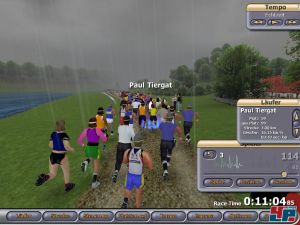 Ihr tut gut daran, eurem Läufer zunächst nicht zu viel zuzumuten, denn von Profi kann noch keine Rede sein. Beim Test hat der Schlabberheld zwar den Marathon an der Alster gerade noch so überstanden, dann aber anschließend im Mittelgebirge schnell schlapp gemacht. Regeneration tut da Not! Mehr als ein zwei Läufe pro Saison sind zunächst noch nicht drin. Am Anfang sollte auch die 100 auf der Prozentanzeige für den Einsatz die Ausnahme darstellen. Neben der Aufnahme von Nahrung ist das übrigens einer der wenigen Dinge, die ihr während eines Rennens bestimmen dürft. Tempo halten und Sprinten gibt es auch noch. Besser vorbereitet dürft ihr dann auch mal mehr Gas geben. Die richtige Renntaktik ist allerdings schnell gefunden, so dass das Rennen auch keinen Reiz mehr ausübt. Mehrspieler – Fehlanzeige, denn online könnt ihr nur eure Rennzeiten hochladen und vergleichen.
