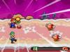 Die Kämpfe gehen auch dieses Mal teilweise über beide Bildschirme, allerdings anders als beim Vorgänger: Zuerst kämpft man auf dem oberen Screen mit Bowser, der kleinere Widersacher einsaugt. Dann erfolgt ein Zoom auf seinen Bauch zu den beiden Brüdern, die sich in seinem Innern tummeln – und dort für ihn die gerade verschluckten Feinde bekämpfen. Neu und wichtig ist auch die Art und Weise, mit der man jetzt Spezialattacken erhält: Statt diese einfach geschenkt zu bekommen, erfordern sie jetzt teilweise die Suche nach bunten Puzzleteilen. Hat man genug von einer bestimmten Sorte beisammen, wird der extra-starke Angriff freigeschaltet. Keine Sorge, das artet nicht in blöde Sucharbeit aus – die Teile sind grundsätzlich auf einem recht überschaubaren Gebiet verteilt, das Aufsammeln aller benötigten Stücke ist normalerweise ein Klacks. Sind alle Gegner besiegt, geht es an die Erfolgsauswertung: Für jeden gemeisterten Kampf erhalten alle beteiligten Parteien Erfahrungspunkte, die in unregelmäßigen Abständen zu steigenden Rängen führen – die wiederum bringen automatisch verteilte Punkte für zusätzliche Lebensenergie, stärkere Widerstandskraft oder höheren Schaden mit sich. Zum Abschluss der Ausschüttung darf man noch, Tradition ist Tradition, ein paar Extrapunkte in einer Art Mini-Roulette abstauben. Nettes Detail am Rande: Der Levelaufstieg wird dieses Mal in Form der guten alten Levelendfahne visualisiert.