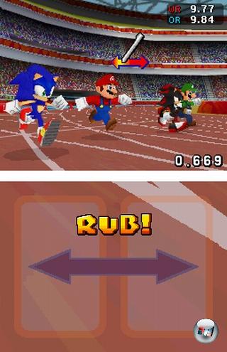 Das liegt hauptsächlich daran, dass das DS-Spiel im Großen und Ganzen seinem großen Bruder entspricht: Klar, technisch müssen logischerweise Abstriche gemacht werden, auch die Steuerung ist nicht mehr ganz so fuchtelfreudig wie bisher, was aber auch Vorteile von Form von weniger Muskelkater mit sich bringt. Aber ansonsten ist alles drin: Alle Figuren, Disziplinen, Minigames, Spielvarianten. Aber beginnen wir mal von vorn: 16 Charaktere aus dem M&S-Universum treten im sportlichen Wettkampf gegeneinander an. Da trifft Mario auf Sonic, Luigi auf Tails, Peach auf Amy oder Bowser auf Dr. Eggman.