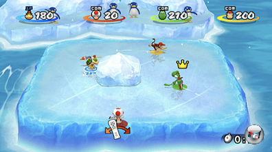 Etwas unterhaltsamer ist da schon die Korbjagd: Zwar bewegt sich auch diese Disziplin eine Klasse unter der Qualität eigenständiger Arcade-Varianten aus GameCube-Zeiten (selbst Mario Slam Basketball auf dem DS lässt es besser krachen), aber das Blocken und Dunken inklusive Wurfuhr entwickelt immerhin eine kompetitive Eigendynamik, zumal die fiesen Items sowie die Figureneigenschaften hier wesentlich besser zur Geltung kommen. Vom Sprungwurf über Korbleger und Monsterblocks ist hier alles möglich, allerdings sollte man keine besonders spektakulären Animationen erwarten – das Spielerlebnis ist eher schrill und bunt als wuchtig oder gar physikalisch.