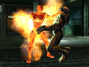 Auf der PSP verzichtet ihr auf all den Schnickschnack und liefert euch nur ein Einzelgefecht nach dem anderen. Außerdem wartet ein auf Karten basierendes Upgrade-System auf euch: Nach jedem Sieg wählt ihr aus einem zufällig zusammengewürfelten Haufen von Power-Up-Karten. Ihr könnt bis zu vier der 170 auf das D-Pad legen und in künftigen Kämpfen einsetzen. Das ist besonders bei den dickeren Gegnern von Vorteil, denn wie schon bei X-Men: Mutant Academy ist das Figurenbalancing hier eine Katastrophe, was speziell im Mehrspielermodus zur Belastung wird: Mit einem Schlaffi wie Daredevil gegen die Ein-Mann-Armee Brigade anzutreten