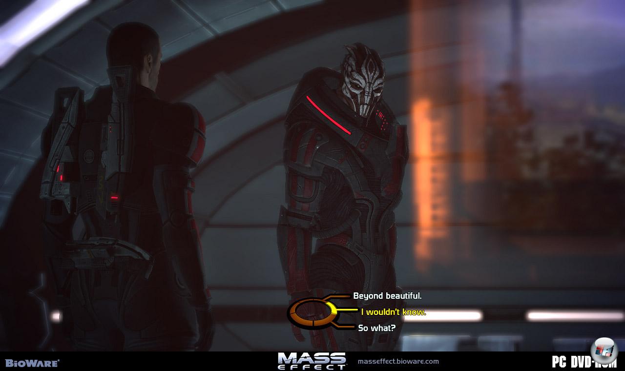 Es ist weniger die Story als vielmehr die Brisanz der einzelnen Situationen sowie die Macht der Entscheidung, die Mass Effect so faszinierend macht. Man nehme die Liebe: Spielt ihr einen Mann, bemerkt ihr innerhalb des Abenteuers, dass ihr eine Beziehung zu einer menschlichen und außerirdischen Frau aufbauen könnt. BioWare geht hier sehr behutsam vor, bestraft euch, wenn ihr zu forsch seid, bringt Eifersucht und Zickereien ins Spiel, zwingt euch zur Geduld und zum Einfühlungsvermögen, bevor man sich schließlich für eine Lady entscheiden darf, um sich in einer Nacht vor dem Finale endlich zu vereinigen – ich empfehle wärmstens die außerirdische Mischung aus platonischer und körperlicher Liebe. Aber Vorsicht: Man kann es sich auch mit beiden verscherzen.