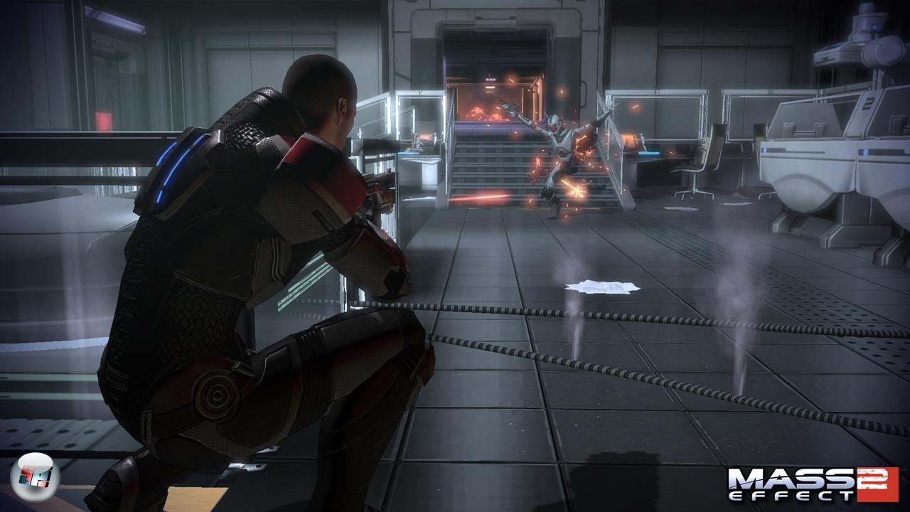 Kaum vom OP erwacht, schon geht es in die Vollen: Wie in reinrasssiger Action à la Killzone 2 oder Gears of War 2 kann Shepard Deckung suchen und sich zum Schuss wieder hinaus bzw. darüber lehnen.