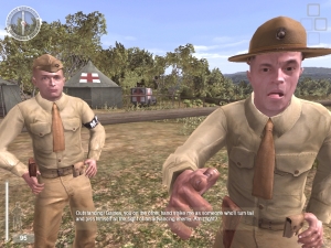 Ihr beginnt mit einer heftigen Attacke auf den Strand von Tarawa. Diese Mission geht allerdings nur wenige Minuten, denn über kurz oder lang werdet ihr erwischt, sackt zusammen und hört nur noch die dumpfen Stimmen eurer Kameraden. Während die Sinne langsam schwinden, zieht euer Leben an euren Augen vorbei – jedenfalls das, was mit der Ausbildung zum Marine begann, denn den überwiegenden Rest von Pacific Assault spielt ihr als eine Art Rückblende, beginnend im Bootcamp. Dort werdet nicht nur von einem Full Metal Jacket-kompatiblen Drill Instructor zurechtgeschrien, sondern lernt auch alles über die Bedienung des Spiels. U.a. ist das Heilungskonzept neu und wichtig: Im Gegensatz zum Wald-und-Wiesen-Shooter findet ihr im Dschungel nur sehr selten mal ein herrenloses Heilpaket. Stattdessen tummelt sich immer ein Sanitäter in eurem Team, nach dem ihr im Notfall lauthals begehrt. Allerdings steht euch der Medizinmann nur einige Male zur Verfügung, danach ist das Aspirin alle. Das ist zwar im Endeffekt nichts anderes als die dauernde Suche nach einem Verbandskasten, aber es wirkt realistischer und es steigert den Druck – denn während an euch herumgedoktert wird, könnt ihr euch nicht bewegen, außerdem ist der Heiler auch für andere Verwundete zuständig, und kann daher nicht immer sofort zur Stelle sein. Das wird überdeutlich, wenn ihr dem Tode nahe am Boden liegt und statt dem besorgten Gesicht des Doktors nur noch ein japanisches Bajonett auf euch zuhechten seht…