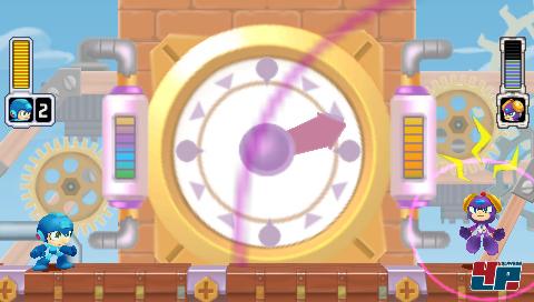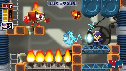 ist auch Mega Man: Powered Up im Grunde kein neues Spiel, sondern ein Remake – allerdings eines, das sich gewaschen hat! Der wichtigste Punkt ist hierbei, dass euch zwei Spielmodi erwarten: Old Style und New Style. Ersteres freut den Traditionalisten: Größtenteils klassisches Leveldesign, Original-Bildschirmgröße (sprich: dicke schwarze Balken links und rechts), die gute alte Musik vom NES verwöhnt das Ohr, die Welten und Gegner sind ordentlich schwer. Doch der wahre Spaß beginnt mit dem »New Style«: Hier erwarten euch u.a. brandneu gestaltete Levels, die natürlich den gesamten PSP-Screen ausnutzen, zwei frische Bossgegner (Oil Man und Time Man), eine nähere Kameraperspektive, die die frische Optik groß ins Bild rückt, eine klitzekleine Story (die wie der Rest des Spiels komplett englisch ist) sowie drei vor jedem Level wählbare Schwierigkeitsgrade. Letztere kommen sowohl dem