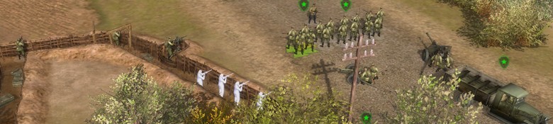 Wie schon angedeutet, spielt der Realismusgrad in einer eigenen Liga und das nicht nur weil es unterschiedliche Munitionstypen gibt oder Infanteristen sogar das dicke MG-Geschütz aus einem defekten Panzern bergen können: Jeder Soldat steckt nur wenige Schüsse weg, Artillerie löscht ganze Armeen binnen Sekunden aus und Panzer sind von Vorne so gut wie unangreifbar. Durch Flammenwerfer oder geschickte Attacken von Hinten sind die Blechdosen zu knacken, sofern die Stahlkolosse die anrückenden Gegner nicht bemerken und ihr überhaupt nahe genug herankommt. Selten war es so schwer, aber im Nachhinein auch so befriedend einen Panzer mit der Infanterie auseinander zunehmen. Die verletzlichen Soldaten in Deckung zu halten und von sicherer Passage zu Passage zu geleiten, ist sowieso unumgänglich, denn kopf- und taktiklose Vorstöße werden mit Verlusten bestraft. Diese wirken gleich doppeltschwer, da es keine Kaserne oder Fahrzeugfabriken gibt, in denen ihr neue Einheiten rekrutieren bzw. bauen könnt. Ihr seid darauf angewiesen eure Anfangstruppen möglichst lange am Leben zu halten und auf Verstärkung zu hoffen…