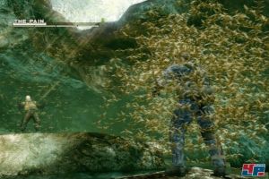 Aber Konami nutzt die Tierwelt trotzdem gut, um Spannung aufzubauen: Nicht nur, dass ihr in knietiefen Sümpfen an riesigen Krokodilen vorbei waten müsst, die genüsslich ihr Maul öffnen. Ihr könnt auch Hornissen-Nester abschießen oder selbst tote Giftschlangen als Wurfgeschosse nutzen, um Wachen abzulenken. Diese Interaktivität sorgt für viel Abwechslung. Manchmal ist es mit Konami allerdings durchgegangen: Ab und zu findet man kleine Plastikfrösche (!) im Unterholz, die beim Abschuss quaken, um Gegner anzulocken. Das Blöde ist: Es klappt nicht immer.