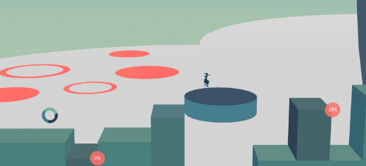 Anderswo bewegt sich die Plattform unter mir grundsätzlich mit mir mit, so dass sie mir ständig den Weg versperrt und ich nicht zum Ausgang nach unten plumpsen kann. Um sie auszutricksen, muss ich mit einigen Schüssen und Sprüngen zwei vertikale Blöcke so ausrichten, dass sie den Störenfried unter meinen Füßen blockieren und ich zum Ziel springen kann. Die Balance der mittelschweren Puzzles ist den Entwicklern in den ersten Welten prima gelungen. Zu leicht sind die Kopfnüsse nicht, spätestens nach ein paar Minuten bin ich aber immer auf die Lösung gekommen.