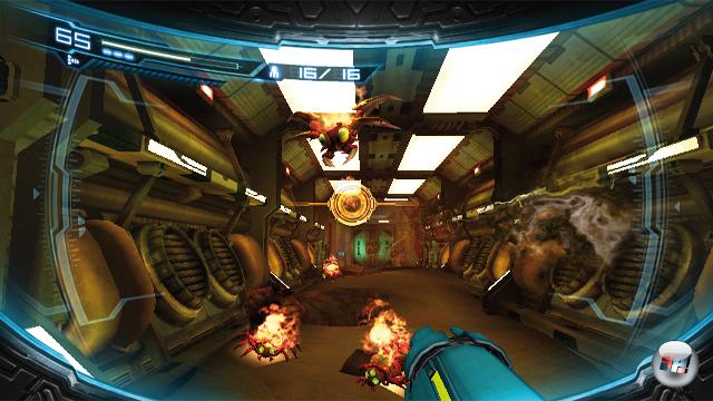 Aber keine Bange, denn anspruchsvoll sind die Rätsel nicht, denn ansonsten gilt: Alles, was leuchtet, sollte beschossen werden – das macht Wege frei. Das ist kein Vergleich zu den kreativen Kopfnüssen früherer Metroids, in denen man ganze Anlagen in Betrieb bringen musste, aber sorgt immerhin für Abwechslung. Die Bosskämpfe gehören auch noch zu den unterhaltsamen Highlights des Abenteuers, weil es hier endlich in mehreren Phasen zur Sache geht. Allerdings erinnern einige Gefchte gegen mittlere Feinde auch an Lightgunduelle, wo man erneut zum Stillstand verdonnert wird: Samus liegt überwältig von einem Monster am Boden und muss in Egosicht dessen Stachelschwanz treffen, der die ganze Zeit wie wild über ihr hin- und her jagt.