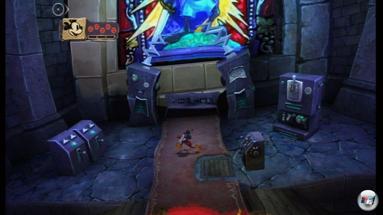 An Kinder richten sich auch die zahlreichen Erklärungen, z.B. zu den aktuellen Aufgaben. Die erscheinen nämlich so häufig und ausführlich, dass sich erfahrene Spieler schon mal gegängelt fühlen – viermal hintereinander erläutert Gus etwa zu Beginn den ganz normalen Angriff. Beim Betreten eines neuen Areals beschreibt der Kobold außerdem die Lage: Da oben ist der Ausgang, hier gibt es dieses zu erledigen, dort könnte man jenes tun. Ausgerechnet dieser wichtige Überblick hinterlässt allerdings etliche Fragezeichen. Zum einen erkennt man nie genau, wo sich das Ziel in Relation zu Micky befindet. Zum anderen weiß man trotz der Textflut nie genau, welche Handlung welche Folge hat. Und weil man keine echte Wahl hat, wenn man Aktion und Reaktion nicht überschauen kann, werden die wichtigen Entscheidungen noch weiter in den Hintergrund gedrängt – ein denkbar unglücklicher Schnitzer. Nicht zuletzt hätte Spector auch drauf achten müssen, dass mancher Auftrag nicht einfach unerledigt liegenbleibt, weil Micky sein Abenteuer fortsetzt. Es ist ärgerlich, dass man immer dann nicht so gut sein kann, wie man möchte, weil manche Aufgaben nach bestimmten Aktionen unvorhersehbar im Nirvana verschwinden. Und das perfekte Spiel, Verzeihung: der perfekte Spielstand ist dann leider schon überschrieben.