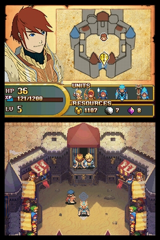 Atmosphärisch wirkt dieses Might&Magic sehr eindringlich, obwohl das Artdesign mit seinen jugendlichen Heldengesichtern im Mangastil spalten dürfte. Jedoch sollten sich auch Liebhaber westlicher Fantasy nicht davon abhalten lassen, denn es geht eher düster als bunt zu. Die Einheiten sind für ihre kleine Größe ansehnlich designt und Japanophoben sei außerdem versichert, dass alle Ritterrüstungen, Geistwesen und Dämonen ohnehin eher europäisch-mittelalterlich wirken. Ebenfalls ansehnlich sind die aus coolen Zeichnungen und heroischen Klängen bestehenden Zwischensequenzen, bei denen man mal die Akteure größer sieht als in der Vogelperspektive der Stadtansicht. Allein die Zauber könnten besser aussehen, da hier Effekte wie bei den Engeln eher selten sind. Wenn sie in den Gegner sausen, ist sogar ein Drehgeräusch zu hören. Im Inn kann man auch mit den Gästen reden, was freilich nicht vertont ist, denn eine Sprachausgabe fehlt wie so oft auf dem DS.