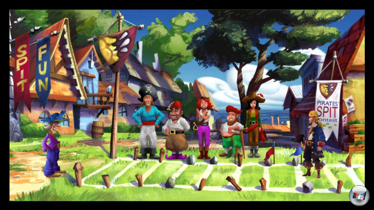 butterweich in alle Richtungen – und die Animationen der Figuren wurden komplett überarbeitet, und beschränken sich nicht mehr nur auf die vorgegebene Animationszahl. Halbwichtiges Detail: Guybrushs Frisur sieht dieses Mal weitaus besser aus. Was allerdings mysteriös ist, ist die komplette Abwesenheit von Vor- und Abspann: Im Original ärgert sich Guybrush zu Beginn mehrfach mit tanzwütigen Affen herum, diesen Job übernimmt jetzt zumindest kurzzeitig das LucasArts-Logo – die Einstiegscredits mit den schönen Piratenbildern fehlen allerdings komplett. Auch der Abspann, in dem man grandiose Tipps erhielt, was man tun könne, nachdem man das Spiel gemeistert hat, fehlt zur Gänze. Auf iPad und iPod muss man außerdem mit weniger Grafikdetails leben – das Wasser bleibt hier z.b. reglos. Auf dem iPod herrscht außerdem schon wieder das Problem vor, dass die Grafik der Originalversion nicht korrekt auf dem kleinen Bildschirm dargestellt wird: Das ursprüngliche Monkey Island sieht hier etwas zerfusselt aus.
