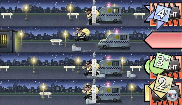 Neben dem Standard-Monopoly wartet auch noch die so genannte »Krösus-Edition« im Hauptmenü – eine Art Monopoly light, der schnelle Kapitalismus-Snack für zwischendurch: Hier habt ihr selbst sehr wenig zu tun, außer in den Minigames möglichst gut abzuschneiden. Denn diese Spielchen bestimmen darüber, wie viele Karten automatisch auf dem Feld verteilt werden. Ist das geschehen, läuft der bärtige Zylinderträger »Mr. Monopoly« an den Spielfeldern entlang und erledigt sämtliche Aufgaben automatisch – nur auf dem höchsten der drei Schwierigkeitsgrade »Tycoon«, der gleichzeitig auch am längsten dauert, müsst ihr selbst handeln. Das Ganze ist kurz (eine Partie dauert zwischen 30 und 45 Minuten), sehr zufallsabhängig und wenig aufregend, aber für zwischendurch ganz nett. Außerdem schaltet ihr hier die Minigames frei, die ihr euch vom Hauptmenü aus auch separat gönnen könnt. Versprecht euch allerdings nicht zuviel: Ihr müsst einem Polizeiwagen entkommen, einen Aktienverlauf richtig schätzen, Gefängnisstäbe zersägen oder Geldsäcke greifen und ins das richtige Loch schmeißen – alles sehr simpel und kurzlebig, auf 360, PS2 und PS3 per Stickgewackel, auf der Wii per Fernbedienungs-Geschüttel gespielt.