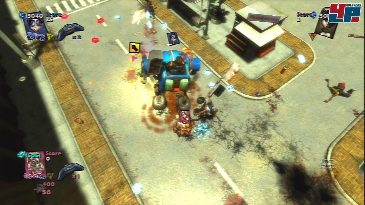 Ihr habt sogar die Möglichkeit euch vorübergehend selbst in ein Monster zu verwandeln und z. B. als Frankenstein, Vampir oder Werwolf auf Zombies oder Mitspieler Jagd zu machen. Eine nette Idee sind auch die verschiedenen Fahrzeuge wie Panzer, Luftkissenboote oder UFOs, die ihr sogar im Rudel bemannen könnt. Je nach Untersatz klemmt sich ein Spieler hinters Steuer, während die anderen vom Beifahrersitz aus Gegner aufs Korn nehmen oder vorinstallierte Geschütze bedienen – trotz nicht immer optimaler Übersicht und Steuerung durchaus unterhaltsam! Vom an sich eher monotonen Spielverlauf können aber auch diese Features nur vorübergehend ablenken. Wer auf anspruchsloses Niedermetzeln hirnloser Gegnermassen steht, kommt zwar durchaus auf seine Kosten, Spielspaß kommt aufgrund der zahlreichen technischen und spielerischen Mängel aber nur selten auf. Wer sich die unausgereifte Zombiejagd trotzdem nicht entgehen lassen will, sollte auf jedem Fall zur wesentlich günstigeren PC-Fassung greifen – am besten als noch günstigeren und obendrein unzensierten Import.