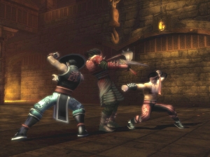 Eine der wichtigsten Neuerungen der Shaolin Monks ist der Koop-Modus: Hier dürft ihr zu zweit als Liu Kang und Kung Lao (bzw. als eine der freispielbaren Bonusfiguren) gegen die Gegnerhorden antreten. Jeder der beiden hat andere Grund- und Spezialmanöver, die sich aber wunderbar kombinieren lassen. Es gibt sogar spezielle Team-Manöver und Puzzles, die nur zu zweit gelöst werden können – laut Entwickler sind 30% des rund zehn Stunden langen Spiels versteckt und nur durch Team-Manöver zu entdecken!