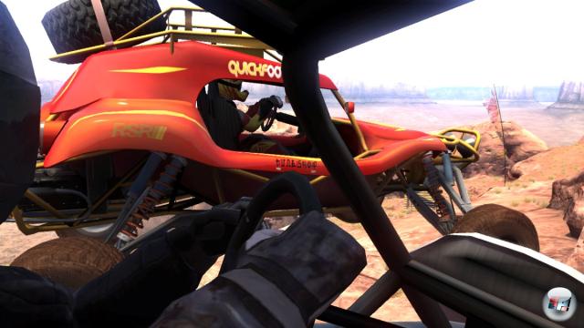 Die Evolution Studios haben bereits mit ihren WRC-Spielen auf der PS2 bewiesen, dass sie ihr Offroad-Handwerk beherrschen. Mit Motorstorm zeigen sie, dass sie auch ohne Simulations-Elemente und Lizenzen ordentlich Staub aufwirbeln können. Die Inszenierung der brachialen Fahrten über Stock und Stein ist schlichtweg hervorragend: Sowohl in der Außen- als auch in der Innenansicht fühlt ihr euch jederzeit mitten in die Racing-Action hineinversetzt und scheint auch ohne Rumble-Effekt den harten Aufschlag nach einem Sprung durch die Wackelkamera zu spüren. Trotzdem wäre der Rüttel-Effekt gerade hier ein tolles Plus gewesen! Insgesamt sehen die Kulissen und die Boliden samt zunehmender Verschmutzung hervorragend aus, bieten herrlich-matschige Partikeleffekte und zeigen, wie ein Titel auf der PS3 optisch begeistern kann. Das bei vielen Launch-Titeln bemängelte Kantenflimmern ist hier kaum vorhanden, die Framerate konstant hoch und die grafischen Details wie Staub, Schmutz oder die Fahrwerke der Boliden lassen kaum Wünsche offen. Ein klein wenig Kritik gibt es dennoch: Vereinzelt erkennt ihr den Bildaufbau, wenn Objekte auf dem Boden aufploppen und auch zweidimensionale Pappaufsteller als Zuschauer zu missbrauchen, sollte so langsam der Vergangenheit angehören. Zwar erreicht man damit insgesamt nicht ganz die Qualität des berüchtigten E3-Trailers, doch kommt man dem schon sehr nahe. Die Erwartungen, die der Trailer durch mitreißende Positionskämpfe, spektakuläre Unfälle und unebenes Terrain bezüglich des Spielgefühls geschürt hat, werden dagegen vollends erfüllt.