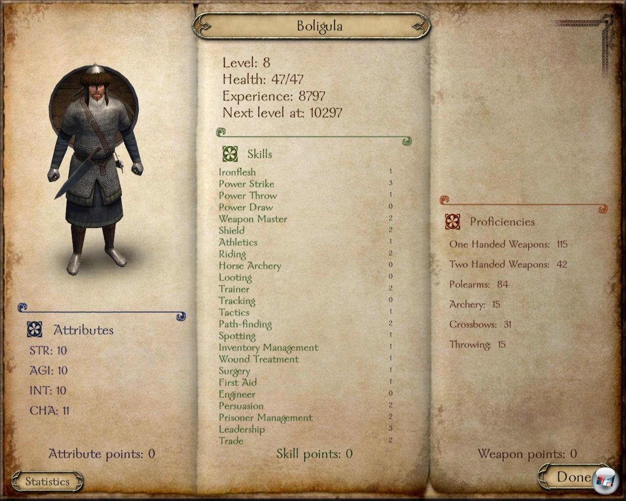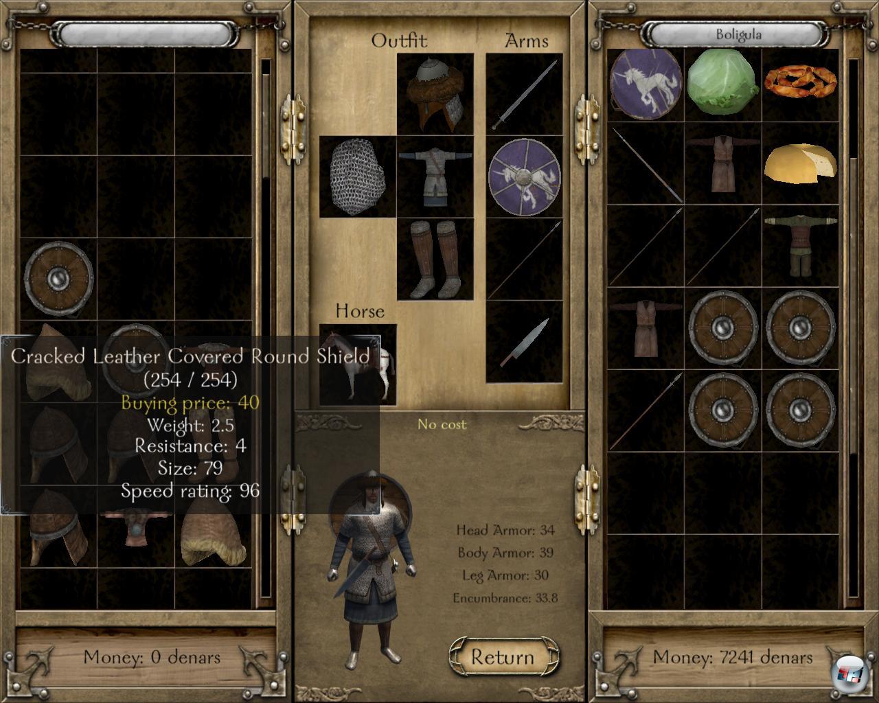 eingeführten Brautschau zeigt. Damit die Damen überhaupt Notiz von einem nehmen, muss man schon ein angesehener Ritter sein – mit blitzender Rüstung und fetter Geldkassette. Denn sie gehen nur nach dem Ruf, der bei Mount & Blade durch die Kämpfe repräsentiert wird. Immerhin kann man sich mittels Lernen von Liebesliedern vom Barden für die Holde wappnen. Da die Heirat immer auch ein politisches Bündnis ist, muss man sich zudem mit Vater der Braut verstehen. Eine Liebesheirat, wie sie die Minnesänger besingen, ist damit ausgeschlossen. Wichtig ist die Ehe allerdings nicht, da es eher aufs Klingen kreuzen ankommt.