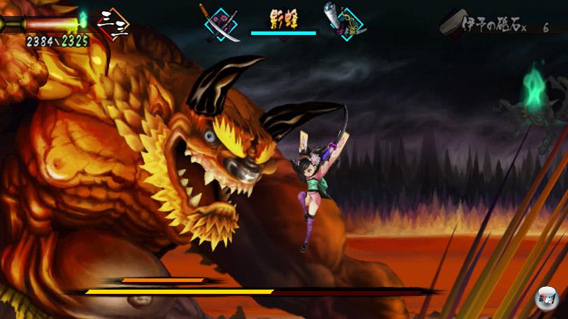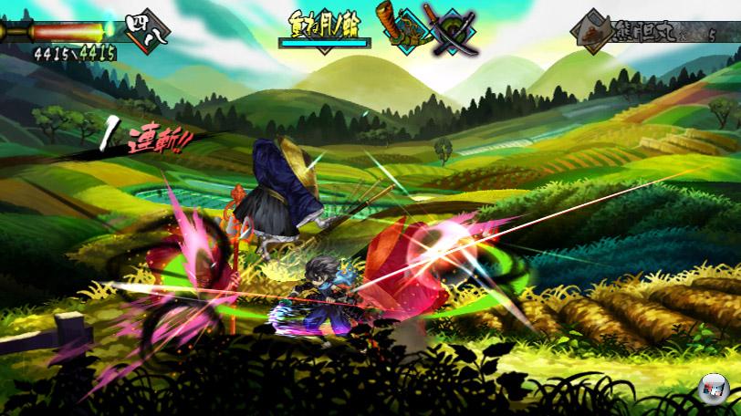 Hin und wieder bleibt einem diese Fußarbeit erspart, wenn man etwa die Dienste von Sänftenträgern in Anspruch nehmen kann – aber meist muss man doch selbst laufen. Eine der wenigen Ablenkungen von dieser Monotonie sind die Herausforderungslevels, die man erstmal finden muss. Bevor man sie betritt, warnt Muramasa einen, dass es gleich schwer wird – und empfiehlt auch gleich noch einen Spielerrang, damit man überhaupt eine Chance gegen die wartenden Gegner hat. Außerdem kann man mit gelegentlich in der Gegend herumstehenden Figuren ein kurzes Schwätzchen halten – das aber nur selten ergiebig ist. Diese Fließbandrennerei ist auch der Grund für die lange Spielzeit von etwa zehn bis zwölf Stunden für ein Durchspielen. Mit beiden Figuren, mit der Suche nach allen Herausforderungen und dem Grinden für alle Schwerter wird’s logischerweise noch mehr. Darüber hinaus ist ärgerlich, dass der Spielstand nicht frei gesichert werden darf. Teilweise liegt eine halbe Spielstunde zwischen den blau leuchtenden Stationen, die sich immerhin zuverlässig vor den teilweise brillant inszenierten Bosskämpfen finden.