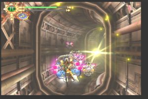 Das haben sich wohl auch die Entwickler gedacht und zur Abwechslung ein paar uninspirierte Fahr- und Flugabschnitte eingebaut, bei denen ihr durch geradlinige Tunnelsysteme rast und motorisierte Angreifer aus dem Sattel wuchtet bzw. gegen die Wände drängt. Diese wirken allerdings genauso fehl am Platz wie die dazu erklingende Surfrock-Mucke. Der übrige Soundtrack ist hingegen recht stimmig, auch wenn sich die Komponisten teils mehr als dreist bei der Konkurrenz, insbesondere Segas Phantasy Star Online, bedient haben. Auch die in Dolby Pro Logic II ausgegebenen Sound-FX gehen größtenteils in Ordnung. Sprachausgabe gibt es hingegen nur selten,