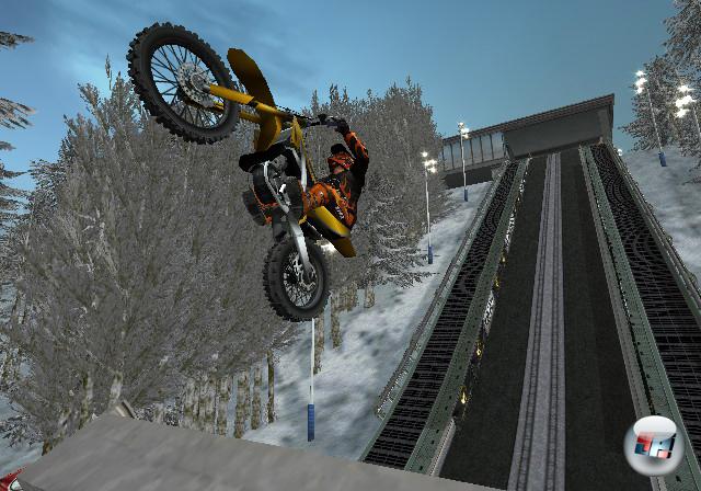 Ski-Weitflug war gestern. Heute wird mit MX-Bikes die Rampen runter gerast.