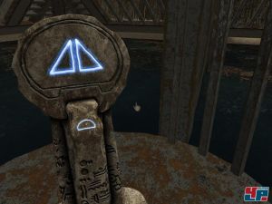 Dieses Mal müsst ihr auch mit einer geheimnisvollen Rasse der Diener Kontakt aufnehmen, was mittels großer Steintafeln geschieht, auf die ihr in einer mysteriösen Schrift kritzelt. Die flüchtigen, alienartigen Wesen erfüllen eure Anweisungen jedoch nur, wenn ihr das richtige Zeichen kennt. Richtige Botschaften werden immerhin auf dem Brett abgespeichert. Übrigens nicht die einzige Kritzelei, denn in euer Tagebuch könnt ihr auch Notizen machen, sogar mit Bild, das gleichzeitig als Savegame dient. Tipps im Spiel wie bei Myst IV gibt es nicht mehr, wer aber auf dem Schlauch steht, kann sich auf der Seite für Tipps online Hilfe holen.
