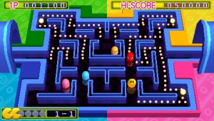 Von sehr alt… Die 80er: Zeit der hellblauen Polyester-Anzüge, der Schulterpolster, der unerklärlichen Frisurenexperimente – und der aufstrebenden Videospielindustrie. In dieser Zeit entstanden die Spiele und Spielkonzepte, die das Design bis heute prägen und sich unverrückbar in die Erinnerung aller Gamer eingebrannt haben. Namen wie Pac-Man, Galaga oder Dig Dug bringen Oldschool-Augen bis heute zum Leuchten. Folgt man den Augen nach unten, gelangt man unweigerlich zu den Händen, in denen sich die PSP befindet, der derzeit leistungsstärkste 3D-Handheld, auf dem sich 2D-Strichmännchen tummeln. Verdrehte Welt? Mit Sicherheit. Namco Museum beherbergt satte 20 Spiele auf der UMD, darunter Titel wie Pac-Man, Dig Dug, Rally-X, Galaga, Rolling Thunder, Rally-X und The Tower of Duaga. Äh, Tower of was? Richtig, einige Spiele, darunter Grobda, Dragon Buster, Mappy oder King & Balloon dürften hierzulande nur den hartnäckigsten Fans etwas sagen. Die meisten Games befinden sich in originalgetreuer Arcade-Umsetzung in der Sammlung, bieten allerdings einige Verbesserungen: Highscores lassen sich speichern, ihr könnt das Spielfeld auf schräge Bildschirmgröße aufplustern und teilweise sogar um 90° kippen – darunter leidet zwar die Steuerung, aber die Idee ist nett, gerade bei Shootern. Zehn der alten Games dürft ihr auch per Game Sharing an einen Freund weiterreichen, der aber in aller Regel nicht mehr als einen Level davon spielen darf, Multiplayergames sind damit auch nicht möglich – sondern nur per halb-klassischem »Reiche die PSP an den zweiten Spieler weiter«-System. …zu relativ neu. Pac-Man, Dig Dug, Rally-X und Galaga befinden sich auch als aufgemotzte Neuversionen auf der Scheibe: Da gibt es 3D-Grafik, mehrere Schwierigkeitsgrade, automatisches Speichern, diverse Boni, einstellbare Extraleben und Wireless-Gaming. Teilweise dürfen sich bis zu vier Spieler gegen- oder miteinander vergnügen, vorausgesetzt, dass jeder eine eigene UMD hat. Auch die Akustik hat dazugewonnen, denn die klassischen Themen wurden remixt und klingen durchaus beschwingt. Leider bietet das Museum entgegen dem Namen nicht viel sonstiges Sehenswertes: keine Spiele-Anekdoten, keine Entwickler-Hintergrundinfos, gar nichts. |  | Fakten: – vier Spiele-Remakes – 16 klassische Namco-Games – zehn Spiele mehr als in der japanischen Variante – Spielfeld teilweise kippbar – viele sinnvolle Verbesserungen – speicherbare Highscores – automatisches Speichersystem  | | Neue Spaßpille: Pac-Man macht in der aufgemotzten Version durchaus was her. |