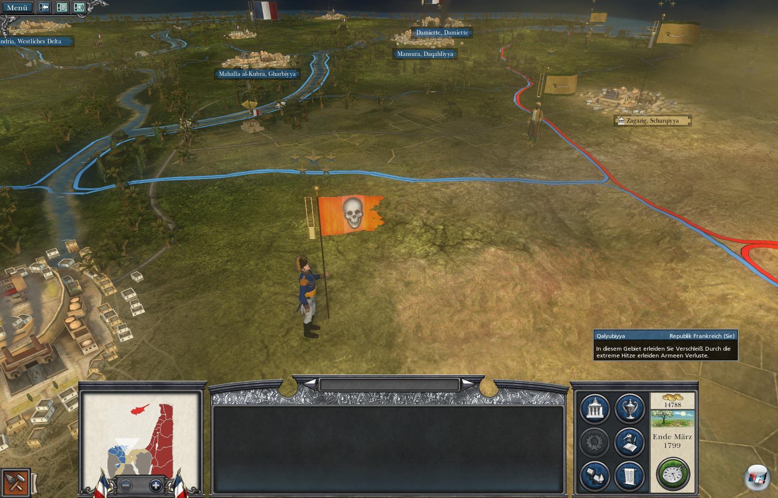 | Bei Verschleiß ziert ein Totenkopf die Fahne – die Truppe verliert Männer und es drohen Desertationen. |