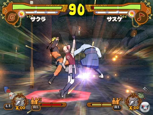 Nein, denn dann wäre das Spiel ja schon nach gut einer Stunde vorbei und damit noch kürzer als der ohnehin schon mickrige Vorgänger gewesen… Also werden dessen Ereignisse einfach ein zweites Mal aufgetischt, der Rest mit viel Hin- und Hergelatsche künstlich gestreckt und schon ist man doppelt so lange unterwegs bis man nach ca. drei Stunden endlich auf Sasuke trifft und den finalen Abspann zu Gesicht bekommt. Der Umfang ist natürlich trotzdem ein schlechter Witz, aber wenigstens weiß die Inszenierung vor allem gegen Ende durchaus zu gefallen. Zudem kann man sich auch wieder abseits des Hauptplots eine ganze Weile mit dem Story-Modus beschäftigen, indem man mehr oder weniger aufwändige Nebenmissionen annimmt. Das Spiel begleitende Bekämpfen von Holzklonen kennt man ja schon aus dem Vorgänger, statt Kröten und Banditen sucht man jetzt