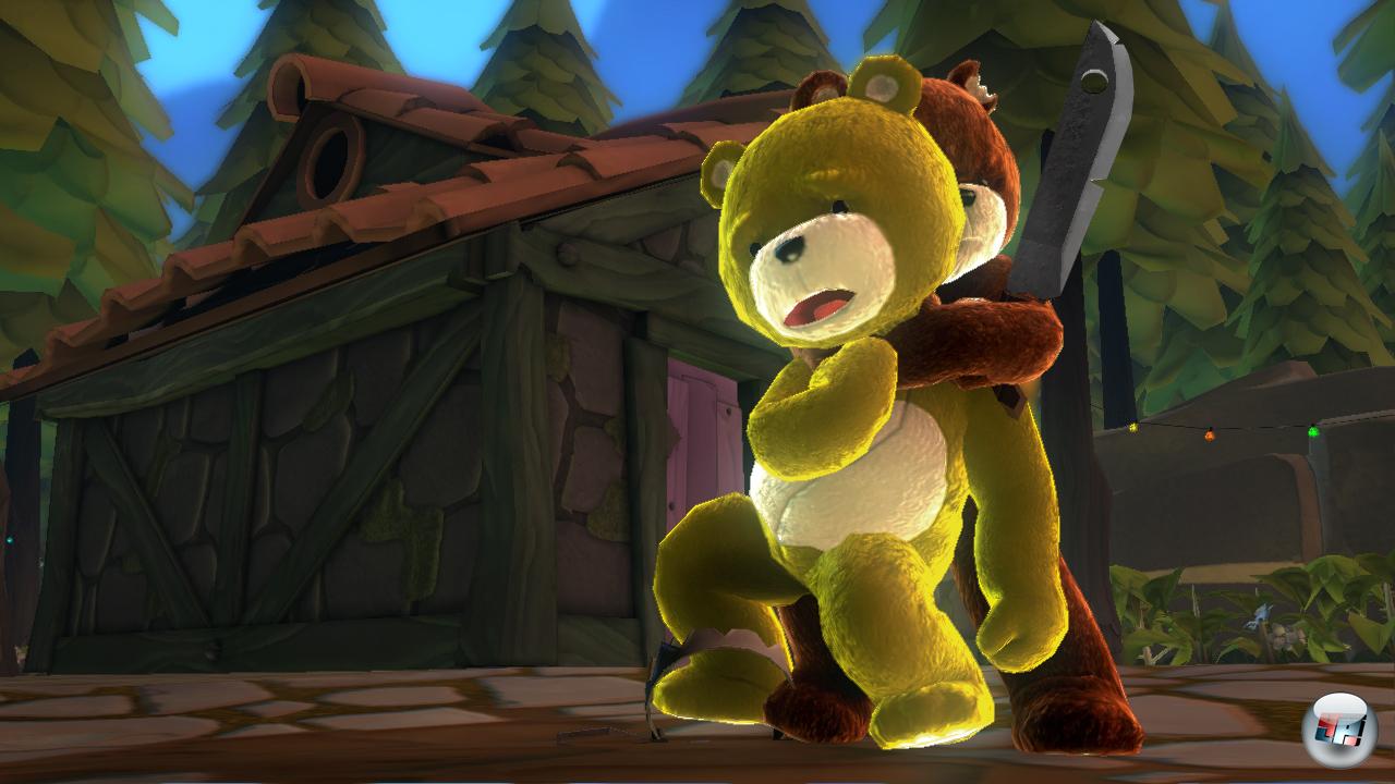 Auch die angesprochenen Finisher laufen sich schnell tot. Denn für jede Waffe, für jede Sabotage, für jede Falle, für jede misslungene Flucht gibt es genau eine Ablebe-Animation. Da in späteren Episoden nur unwesentlich mehr Sabotage-Möglichkeiten oder Waffen hinzugefügt werden, beraubt sich Naughty Bear seiner Einstiegsfaszination.
