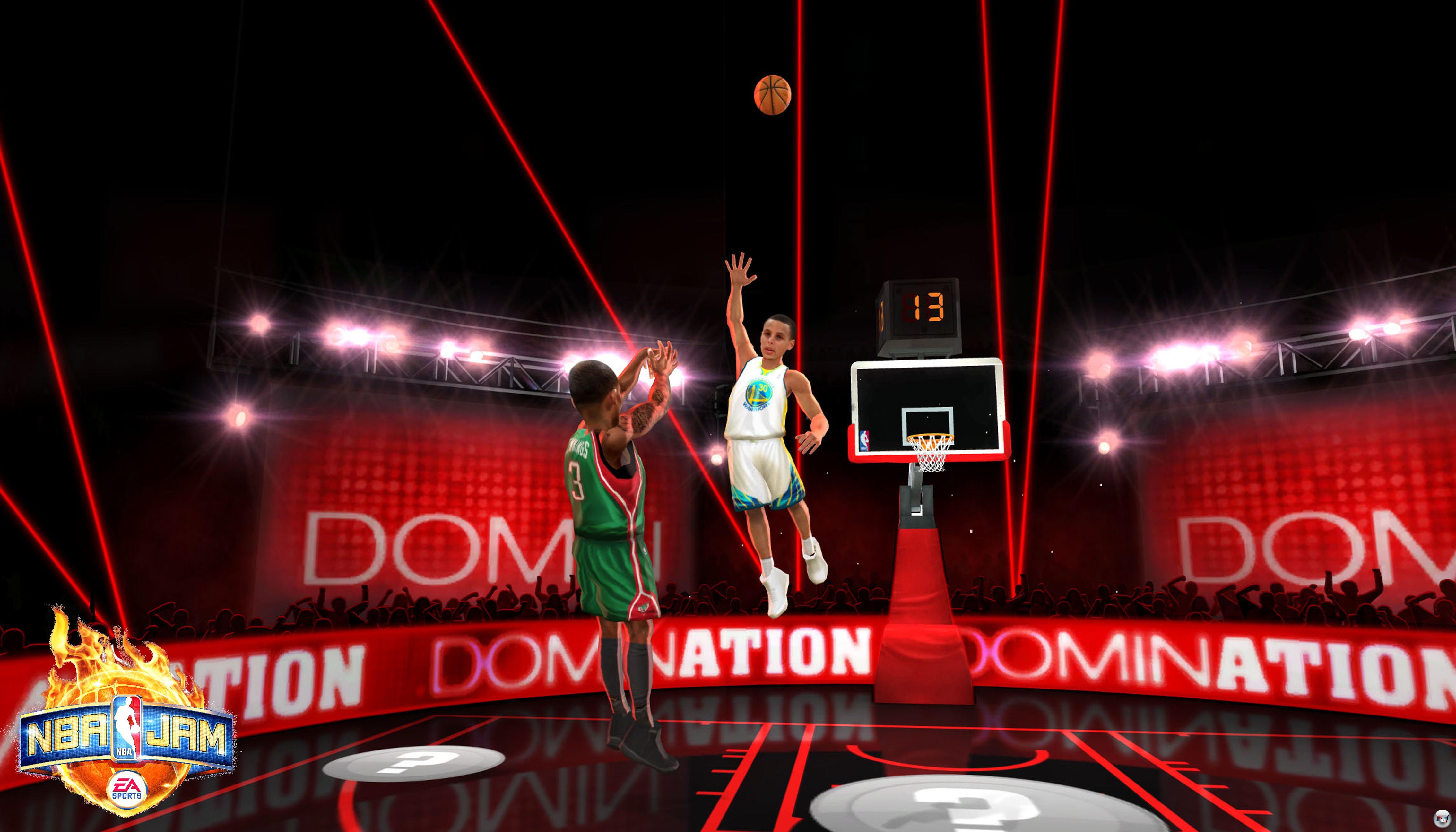 Mal geht es um die clevere Ausnutzung von Power-ups, die Spieler nicht nur schneller oder robuster, sondern auch winzig klein machen. Mal spielt man mit veränderter Kamera oder Teamgröße. Hinzu kommen einige interessante Spiele für zwischendurch: In „Dominanz“ geht es darum, farbig markierte Bereiche des Feldes zu erobern, indem man von dort aus Punkte erzielt – das macht richtig Laune, weil man sich hier wunderbar ärgern kann. Auch die Halbfeld-Duelle zwischen zwei Spielern oder das Schmettern, wo man so lange gegen das Brett dunkt bis es bricht, sorgen für Unterhaltung. All diese Minispiele retten NBA Jam zusammen mit dem Online-Modus auf ein gerade noch befriedigendes Niveau: Im Internet kann man in Ranglisten oder mit Freunden entweder eins gegen eines oder zwei gegen zwei spielen; also mit vier Mann losdunken.