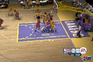 Schön ist, dass man in der Defensive nicht nur komfortabel zwischen Mann- und Zonendeckung umschalten kann, sondern mit dem rechten Analogstick sowohl nach unten und zur Seite gegen Dribblings als auch nach oben gegen Würfe verteidigen kann – NBA 2K6 wird mit einem ähnlichen System aufwarten: Die Profis fuchteln dann entweder mit den Armen oder heben sie wie eine Mauer in die Höhe. Das kommt dem Charakter der echten Verteidigung sehr nahe und hievt NBA 06 wieder ein Stückchen Richtung Realismus. Im Gegensatz zu früheren Versionen kann man jetzt auch nicht einfach im Angriff über die Linie gedrängt werden oder auf den Ball führenden Spieler rennen und dort wie wild für einen Steal auf den Button hämmern: Erstens kann sich der Angreifer umdrehen und den Ball sichern, zweitens sorgen diese Dauerattacken dafür, dass er ins Straucheln gerät, fällt und ein Foul gepfiffen wird. So wird auch in der Defensive mehr Fingerspitzengefühl und Timing gefordert.