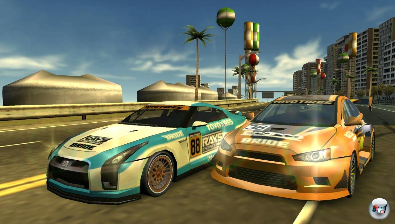 Der Karrieremodus war auf den Konsolen vielleicht nicht brillant, aber er hat zumindest die Atmosphäre der Rennwochenenden gut eingefangen und mit diversen Events von Grip- über Speed- bis hin zu Drift- und Drag-Rennen für Abwechslung gesorgt. Doch das, was euch auf der PSP serviert wird, ist dagegen nur ein schlechter Witz: Euch erwarten insgesamt 13 Strecken, von denen zu Beginn allerdings nur drei zugänglich sind. Für jede Strecke stehen euch mehrere Events zur Verfügung – genau so, wie es auf den Konsolen bei den Renntagen der Fall war. Allerdings gibt es einen großen Unterschied: Ihr habt längst nicht mehr eine so große Auswahl, da ihr auf der PSP weder in Drift-Wettbewerben stilvoll durch die Kurven rutschen noch in Drag-Rennen perfektes Timing beim Schalten an den Tag legen müsst. Diese essentiellen Bestandteile der Serie wurden für Sonys Handheld einfach mal so gestrichen. Stattdessen bekommt ihr mit dem Tor-KO einen neuen Modus, der eine Mischung aus Zeitfahren und Elimination darstellt, denn hier gilt es bereits am ersten Checkpunkt