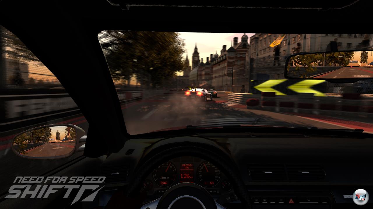Um Schäden muss man sich allerdings keine Sorgen machen: Zwar wird optional neben einem kosmetischen auch ein volles Schadensmodell angeboten, doch fällt das Ergebnis ähnlich ernüchternd aus wie bei der Anspiel-Version von Gran Turismo 5 auf der gamescom. Selbst heftige Einschläge wirken sich kaum auf die Fahrphysik aus und auch die Karosserie bleibt bis auf ein paar Kratzer und Beulen sowie kaputte Lichter weitestgehend verschont. Spiegel bleiben jederzeit dran und bekommen im Gegensatz zu Front- und Heckscheiben nicht mal Risse oder einen Sprung. Auch Türen, Heckklappen und Stoßstangen scheinen untrennbar mit dem Fahrzeug verbunden zu sein – einzig die Motorhaube verabschiedet sich irgendwann und gibt den Blick auf das Innenleben frei. Es ist traurig, dass offenbar niemand es schafft, ein ordentliches, zumindest halbwegs realistisches Schadensmodell zu realisieren. Genau wie bei so vielen anderen Spielen weiß ich auch hier nicht, was genau an meinem Boliden zu Bruch gegangen ist. Irgendwann zieht die Lenkung halt mal nach einer Seite und der Motor scheint nicht mehr so viel Leistung zu bringen wie gewohnt. Aber eine konkrete Schadensanzeige, wie etwa bei Forza 2 oder den PC-Simulationen, findet man hier leider nicht. Allerdings lässt sich auf Wunsch das komplette HUD ausblenden oder verkleinern, wenn man auf Positionsangaben oder den Punktezähler verzichten kann.