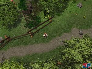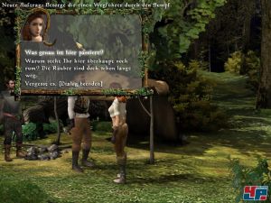 Die wenigen Rätsel sind schnell gelöst, weil sie viel zu offensichtlich sind. Wie kommt ihr beispielsweise an der Wache vorbei? Lösung: Hütte betreten, Brechstange einsacken, Kiste mit Brechstange aufbrechen und Abzeichen der Garde entnehmen. Wenn ihr Glück habt, geratet ihr an irgendjemand, der einen Auftrag für euch hat. Anlaufpunkte dafür sind Amtsstuben, Läden oder Wirtshäuser, in denen bisweilen sogar ein völlig vereinsamter und betrunkener Gast herumlungert. Der erzählt euch dann vielleicht von jemand, den er vermisst und den ihr finden sollt. Manchmal erzählt euch jemand anderer, dass sein Sohn verschwunden ist, den ihr unbedingt suchen müsst. Oder aber der Bürgermeister sucht jemand, den ihr bitte auffinden sollt. Ihr seht also, für sonderlich viel Abwechslung ist nicht gerade gesorgt. Die Orientierung in den Wäldern und Fluren ist gelinde gesagt fast unmöglich, da es keinen Kompass oder eine Karte gibt. Ihr könnt lediglich den Straßen folgen und darauf hoffen, irgendwann den Richtigen zu treffen. Oder aber es verschlägt euch dorthin, wo ihr partout nicht hinwollt: in die Berge oder in den Sumpf. Ein erster Patch fügt die längst überfällige Karte ein.