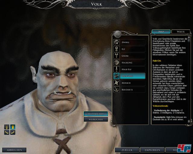 euren Held bzw. die Heldin könnt ihr zunächst aus dem Vollen des D&D-Genpools schöpfen: Egal ob Zwerg, Halbork, Elf oder Berührter – es gibt genug Auswahl, darunter erstmals Abstufungen wie Goldelfen, Grauzwerge oder Tiefengnome. Von der einfachen Klasse des Kämpfers oder Magiers bis zur Prestigeklasse der Marke „Arkaner Bogenschütze“ habt ihr alle Möglichkeiten einen Allrounder oder Spezialisten nach Maß zu schnitzen. Neu dabei sind u.a. der „Schattendieb von Amn“ oder der „Duellant“.