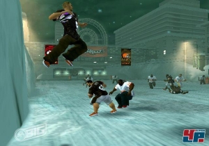 im Hinblick a uf die EA-Tradition konventionell; der Eindruck zieht sich durch das ganze Spiel. Kurz gesagt: Kennt ihr NFL Street 2, kennt ihr auch den dritten Teil. Dabei war schon die erste Fortsetzung kein Pflichtkauf für Besitzer des Erstlings. Ein paar neue Plätze, eine Hand voll neuer Tricks, ein besseres Team-Management – das war’s. Die triste Farbgebung verblasst gegen das farbenfrohe NBA Street; vor allem auf PS2 gibt es dort lebendigere Spieler. In Sachen PSP wirkt Street 3 frischer; das kleine Bild verschluckt gesichtslose Akteure eher als eine Mattscheibe und solange God of War nicht auf dem Handheld läuft, darf der sich hinter seiner schwächeren Technik verstecken.
