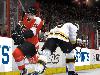 Noch nachteiliger als die einsetzende Müdigkeit kann aber der Verlust des Schlägers sein: Denn nach einigen Matches zeigen sich dann doch die physikalischen Auswirkungen, wenn sie nach der Kollision mit einem Puck, einem mächtigen Schlagschuss oder der Attacke eines Gegners brechen – sehr ansehnlich! Dann liegen die Reste tatsächlich als bewegliche Hindernisse auf dem Eis, die mit dem Puck kollidieren können, so dass er plötzlich nach oben abgefälscht wird. Man kann den Puck auch ohne Schläger schnell weg kicken oder gar mit dem Handschuh weiter leiten, sollte aber an die Bande skaten, um von der Ersatzbank einen neuen Schläger zu bekommen – das sind dann angenehm hektische Szenen auf dem Eis. Apropos Bande: Der Kampf um den Puck am Plexiglas, wenn man seinen Gegner offensiv an die Bande presst oder sich defensiv in diese Haltung begibt, wirkt flüssiger und weniger störrisch, weil man die Situationen klarer bereinigen kann.