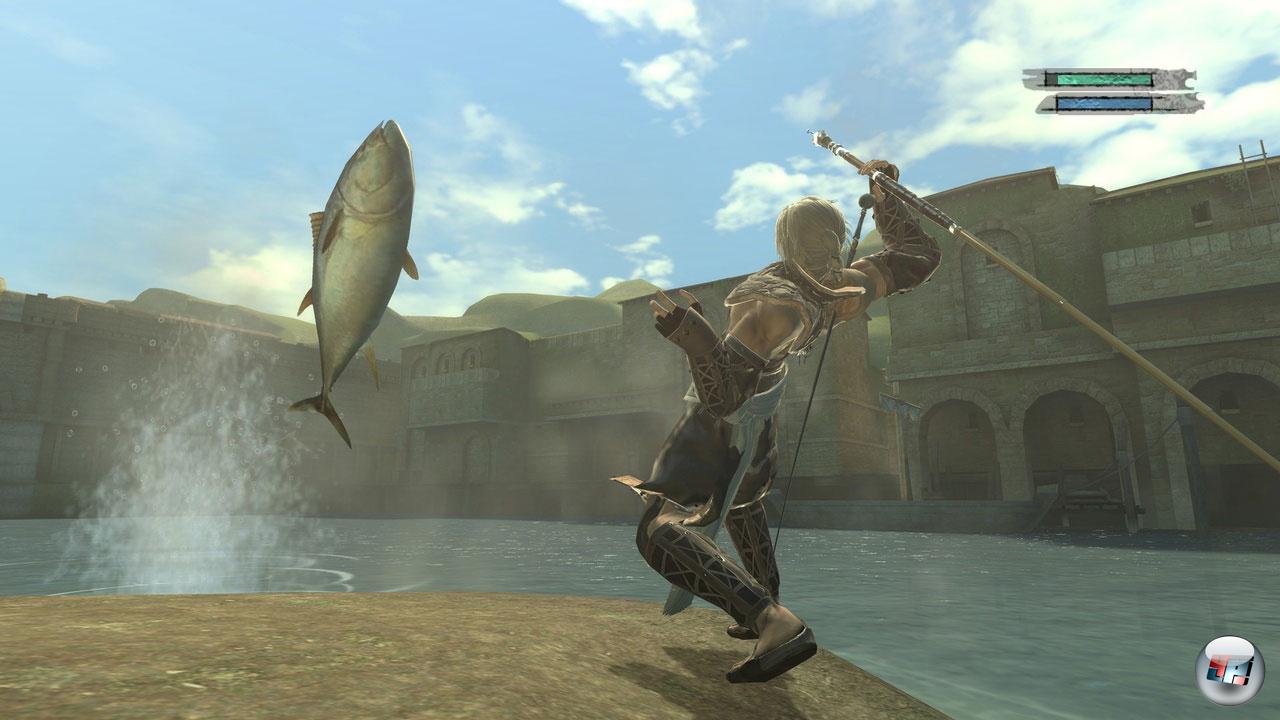 Aber es gibt nicht nur negative Überraschungen wie die inkonsistente Umsetzung der Sprachausgabe oder die grundsätzliche Technik. Denn für einfachen „XP-Kloppmist“ bricht Nier mit einigen Konventionen. Genauer gesagt, schert es sich um sie in keiner Form. Denn in welchem anderen Titel in dieser Richtung kann man angeln oder seine Felder beackern, um sich zusätzlich die Zeit zu vertreiben, Rohstoffe zum Handel oder Selbstverbrauch zu gewinnen oder von den mitunter anstrengenden Kämpfen auszuspannen?