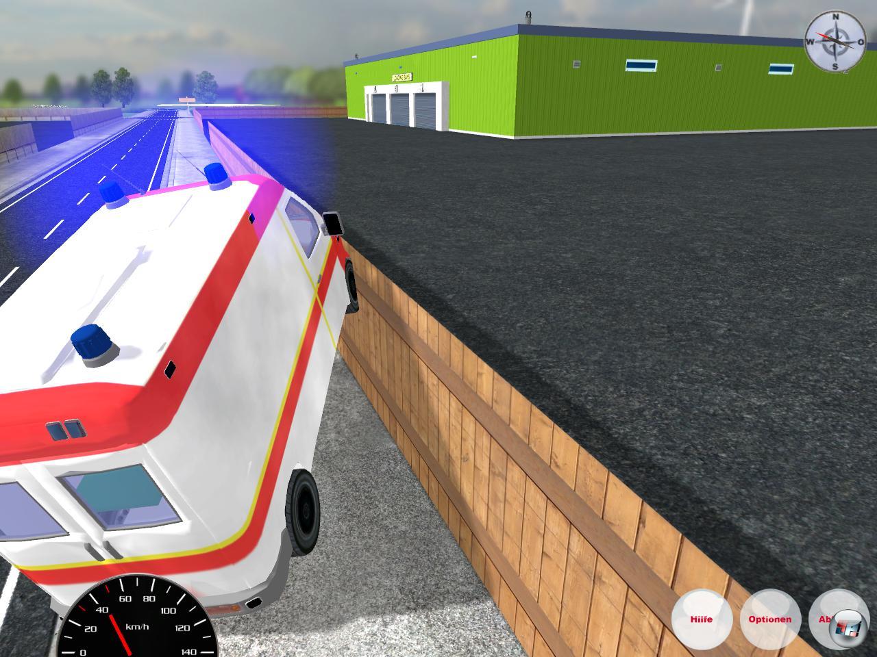 Worum es geht? Ihr beginnt eure „Karriere“ ohne Einführung oder dergleichen mit dem ersten Einsatz, vor der Tür des Hospitals am Steuer eines hässlichen weißen Kastens mit vier blauen Lampen auf dem Dach. Zur Begrüßung ertönt ein unrealistisches Dauergejaule, was mutmaßlich eine Art Martinshorn sein soll, aber den Lärm der WM-Vuvuzelas als Symphonie in Dur erscheinen lässt. Gottlob lässt sich der Krach abstellen; für die übrigen Fahrzeuge in der hässlichen Stadt spielt es ohnehin keine Geige, ob das Blaulicht aktiviert ist oder nicht: Die fahren stur wie auf Schienen ihren Stiefel ab und kümmern sich einen feuchten Kehricht um euren Krankenwagen. Das ist aber auch nicht weiter tragisch, denn es kommt auch gar nicht darauf an, Karambolagen zu vermeiden oder auf der Straße zu fahren. Ihr könnt nach Lust und Laune der Richtung des rechts oben eingeblendeten Pfeils folgen, dabei alles rammen (Menschen und Tiere gibt es eh nicht) und auch querbeet zum Einsatzort fahren. Der ist als gelber Kreis markiert und dort geht der Schrecken erst richtig los…![]()